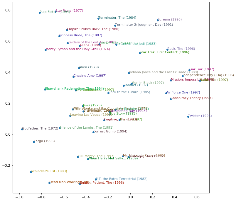If there were two movies that were nearly identical, then their embedding vectors would also have to be nearly identical, because the users that would like them would be nearly exactly the same. There is a more general idea here: movie similarity can be defined by the similarity of users that like those movies. And that directly means that the distance between two movies’ embedding vectors can define that similarity. We can use this to find the most similar movie to Silence of the Lambs: