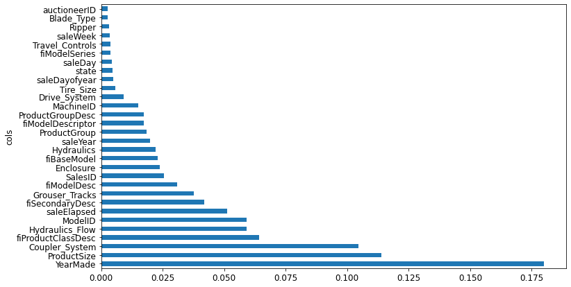 cat_nn.remove('fiModelDescriptor')We can create our TabularPandas object in the same way as when we created our random forest, with one very important addition: normalization. A random forest does not need any normalization—the tree building procedure cares only about the order of values in a variable, not at all about how they are scaled. But as we have seen, a neural network definitely does care about this. Therefore, we add the Normalize processor when we build our TabularPandas object: