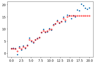 One minor issue we have to be aware of is that our PyTorch model and our sklearn model create data of different types: PyTorch gives us a rank-2 tensor (i.e, a column matrix), whereas NumPy gives us a rank-1 array (a vector). squeeze removes any unit axes from a tensor, and to_np converts it into a NumPy array: