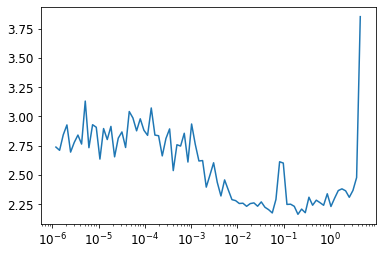 learn = Learner(simple_cnn(), dls, cross_entropy, lr=0.1, cbs=cbs+[lrfind])