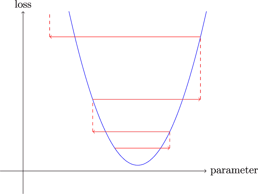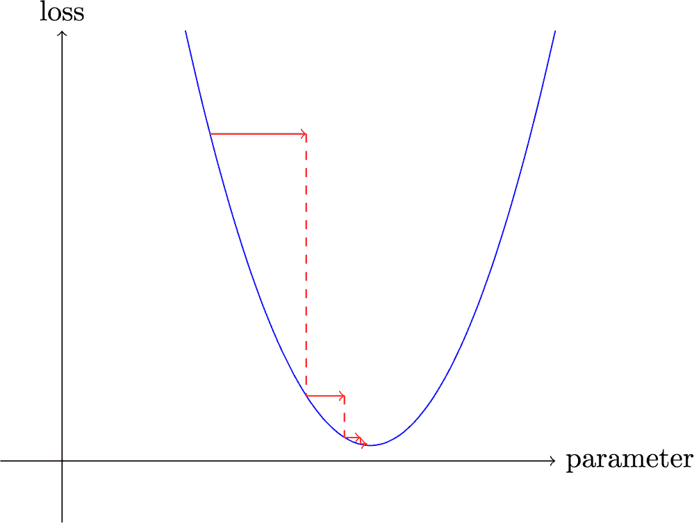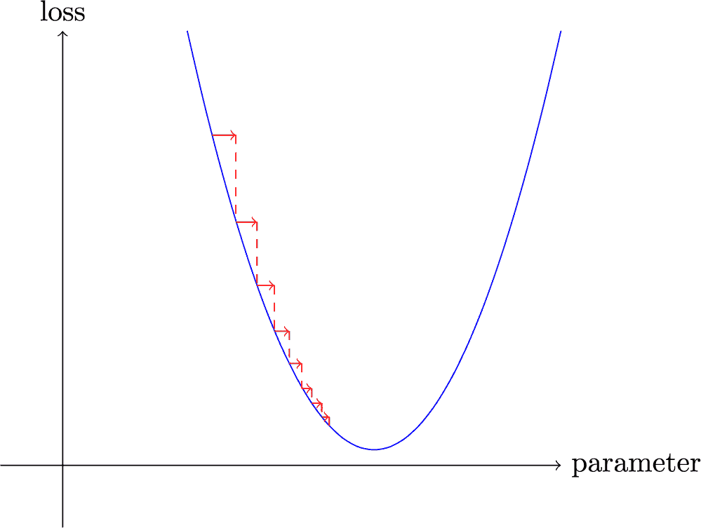 | 梯度下降 | 沿着梯度相反方向迈出一步,使模型参数稍微变得更好。 |