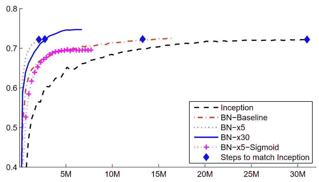 图 13-16. 批量归一化的影响(由 Sergey Ioffe 和 Christian Szegedy 提供)